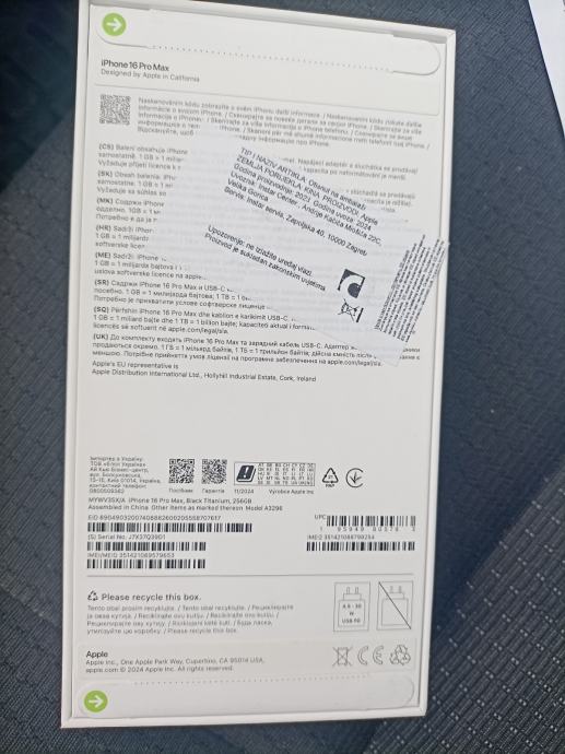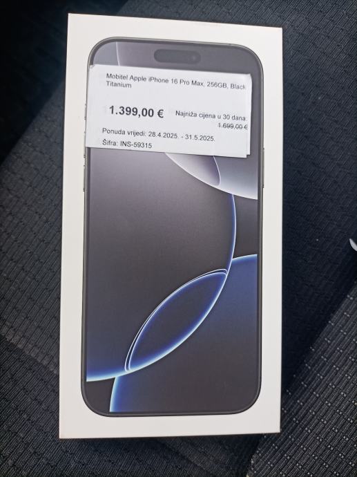 Prodajem NOVI iPhone 16 pro Max crni 256GB kupljen u trgovini Instar