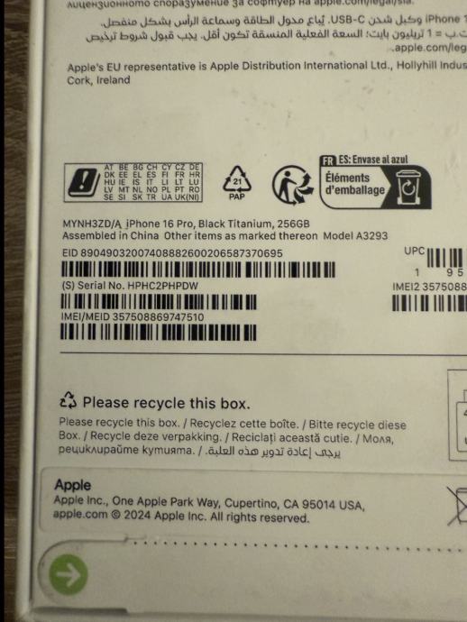 Iphone 16 Pro Max 256 GB ,vakum garancija Black Titanium