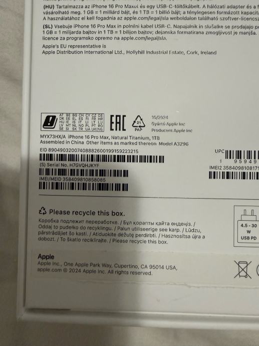 Iphone 16 pro max 1tb memorija baterija na 99% mobitel je kao nov..fixsno