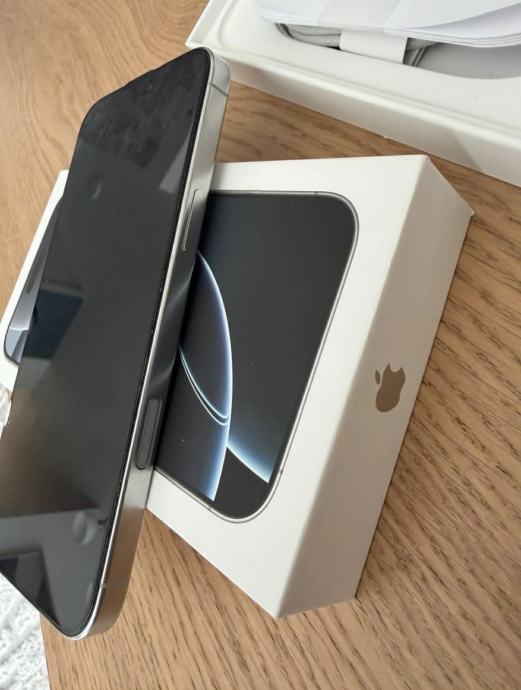 Prodajem iPhone 16 Pro Max s 256 GB memorije u bijeloj boji.