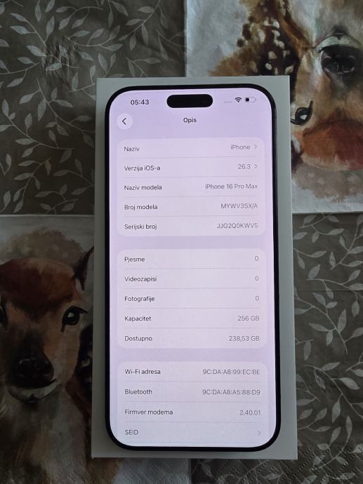 Prodajem u crnoj boji Iphone 16 pro max sa 256gb skladišne memorije. Uređaj je u stanju novoga bez tragova korištenja. Račun HT. Zdravlje baterije na odličnih 95%. Novi iOS. Cijena 860€. Cijena u zamjeni veća. Primopredaja zg, ostalo po dogovoru. Kontakt broj: 092-2142/607. Može poziv, sms, viber, whatsapp.
