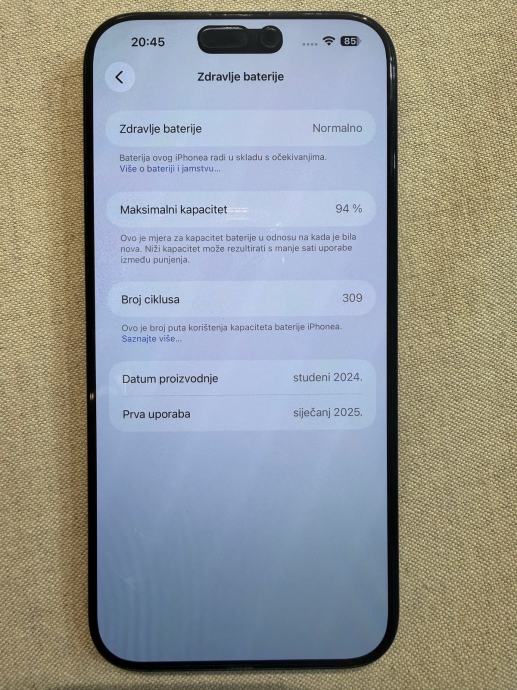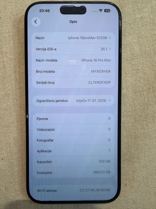 iPhone 16pro Max 512gb, zdravlje baterije 94%, garancija do kraja siječnja 2026.