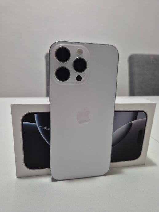 Prodajem Iphone 16 Pro Max 512gb u savrsenom stanju kao prvog dana. Zdravlje baterije 100 posto i ima samo 92 ciklusa punjenja. Apple garancija do 26.9.2026 godine. Gratis jedno privacy zastitno staklo i crna maskica nova.