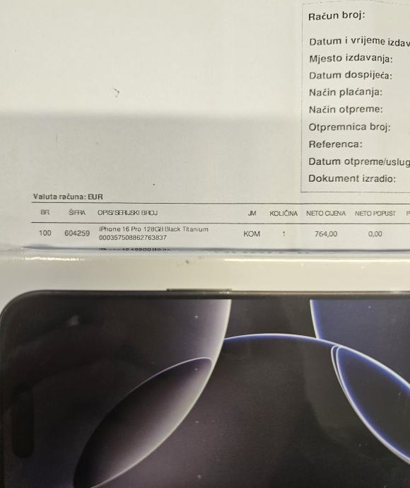 Apple iPhone 16 Pro 128GB Black Titanium! Nov, račun (Dubrovnik)