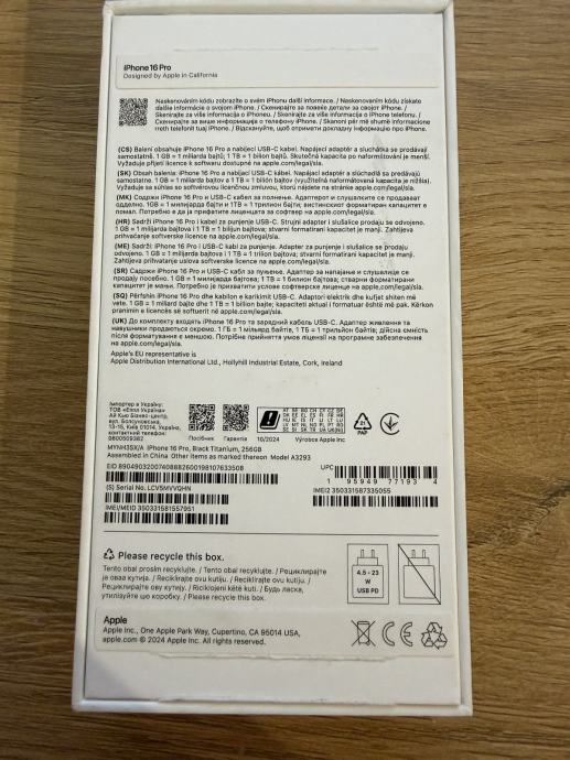Prodajem Apple iPhone 16 Pro 256GB black titanium.