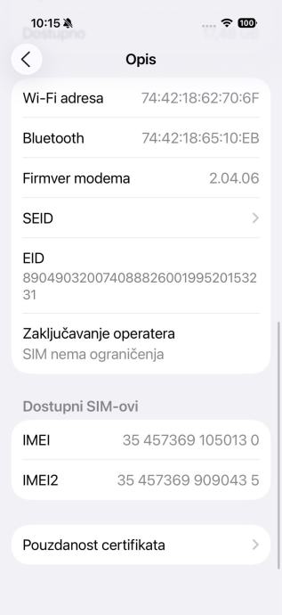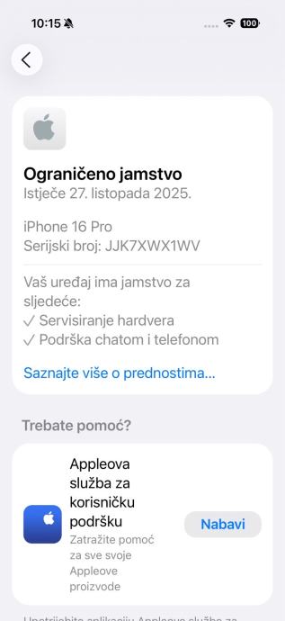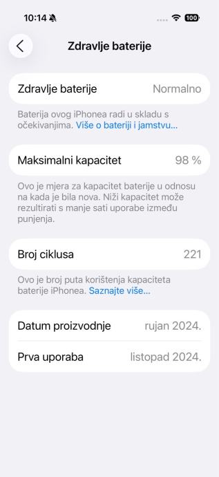Apple iphone 16pro, 98% baterija dostava za HR