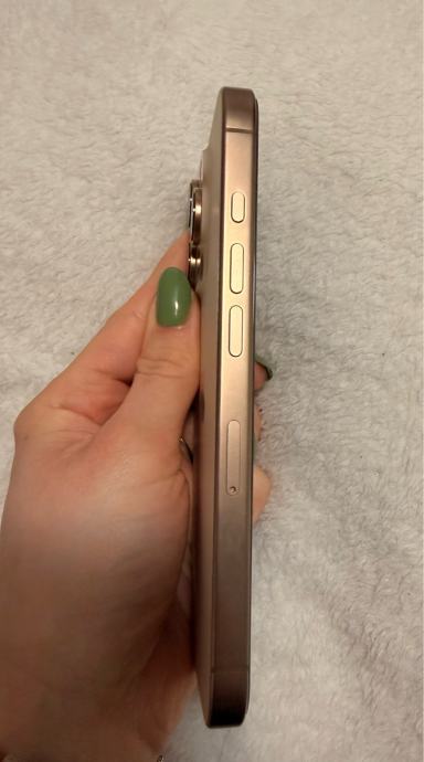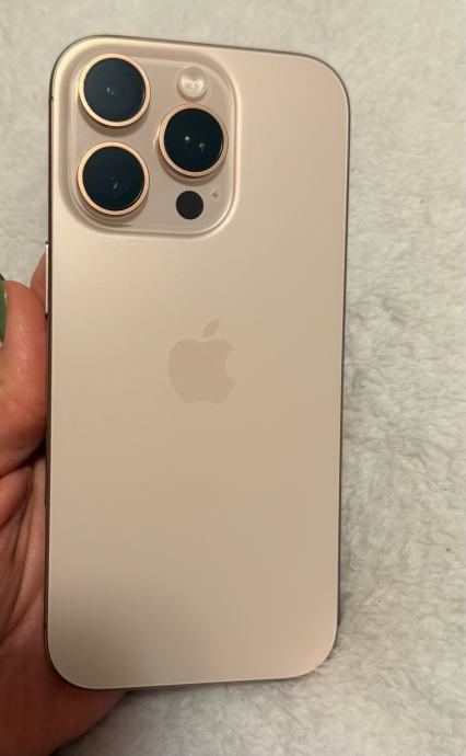 Prodajem rabljeni iPhone 16 Pro s 128 GB memorije u boji Desert Titanium.