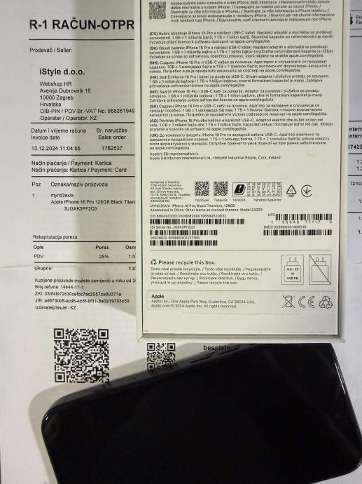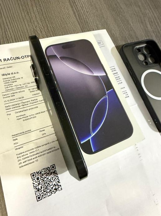 iPhone 16 pro 128gb Black Titanium *TOP STANJE*, mobitel je od prve sekunde u staklu i foliji, nikada nije pao na pod ili se ogrebao. Uređaj nema niti jednu ni najmanju crticu niti su vidljivi tragovi korištenja, dakle tvorničko stanje. Garanciju ima još par dana, na mobitelu je staklo kaljeno i dajem maskicu. Cijena je fiksna i molim bez zvanja ako niste ozbiljan kupac. Baterija je 97% zdravlje. Dajem i račun.