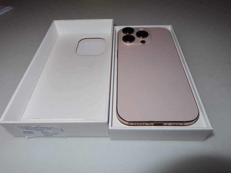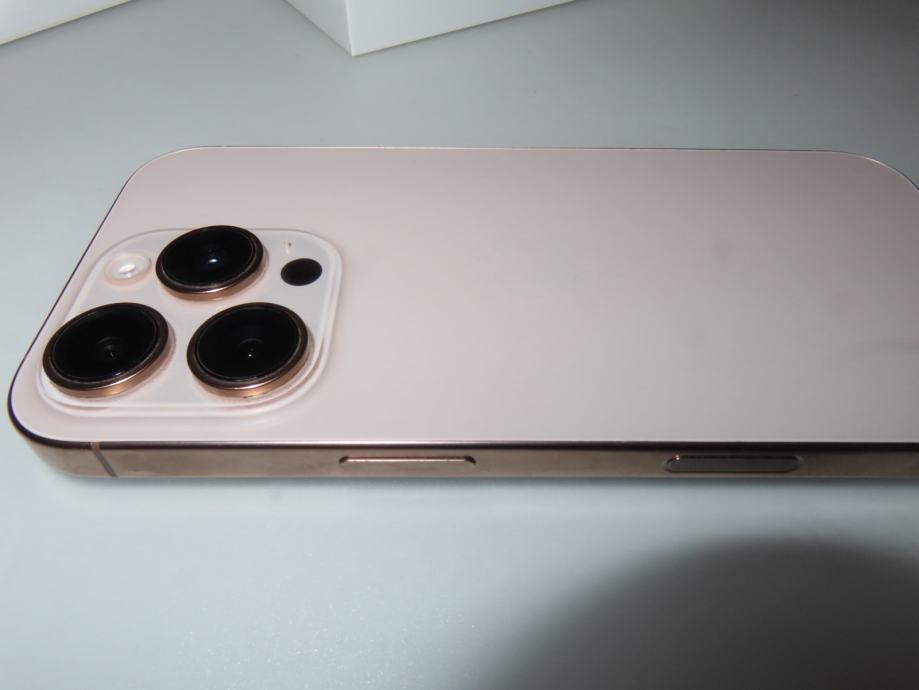 Prodajem rabljeni iPhone 16 Pro s 128 GB memorije u zlatnoj boji (Desert Titanium).