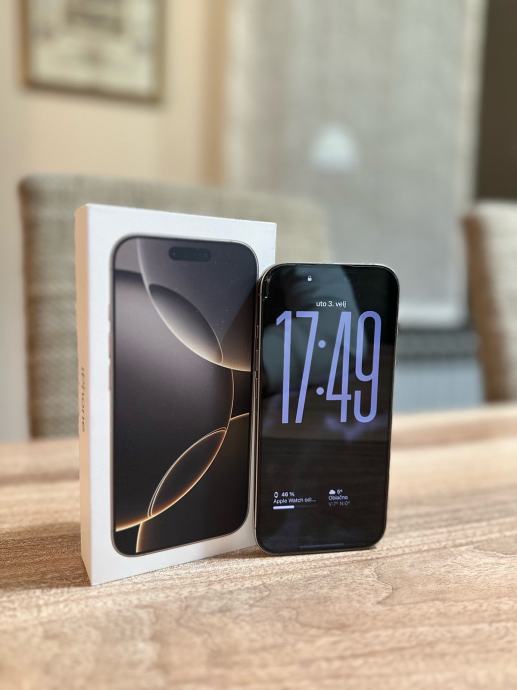 Prodajem iPhone 16 Pro 256Gb, natural titanium, zdravlje baterije je 92%.
