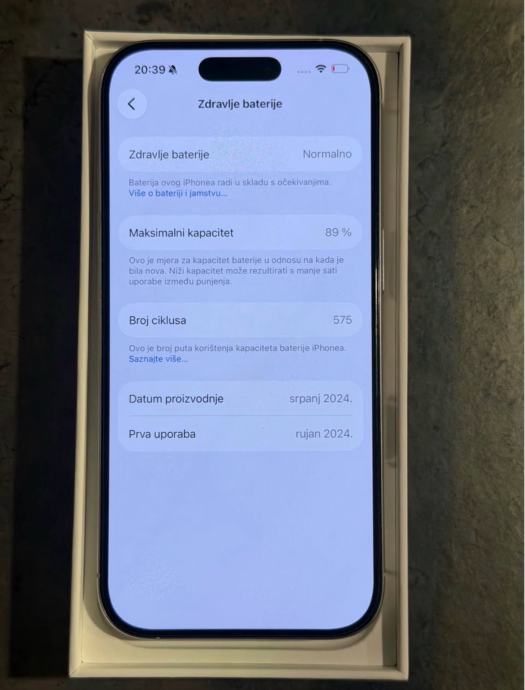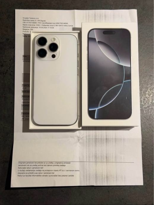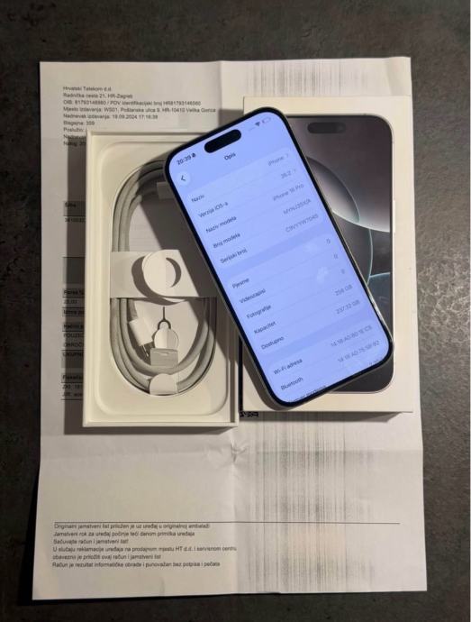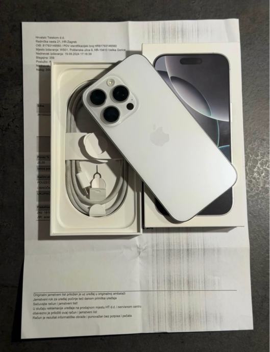Prodajem iPhone 16 Pro od 256Gb memorije u bijeloj boji. Mobitel je u savršenom stanju bez ikakvih tragova korištenja kao što se može vidjeti na slikama. Na uređaju nikada ništa nije mijenjano ili popravljeno te je sve ispravno. Zdravlje baterije je na 89% kapaciteta.
