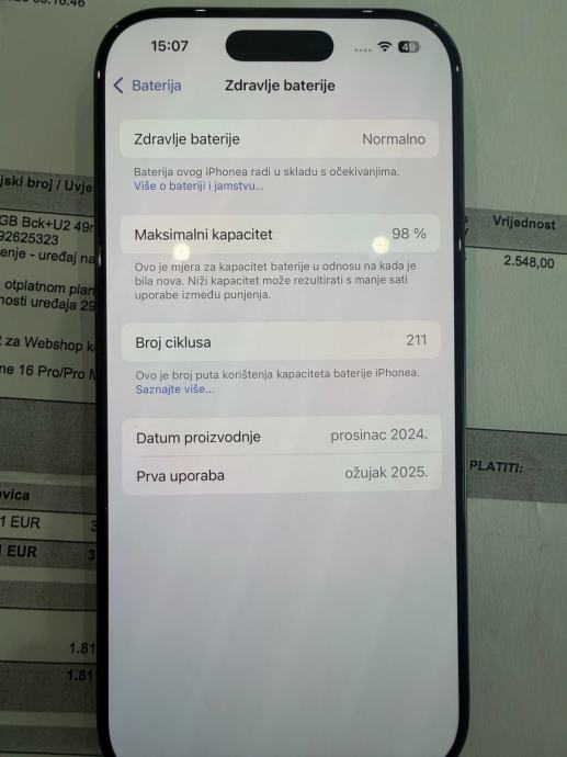 iPhone 16 pro Battery 98%