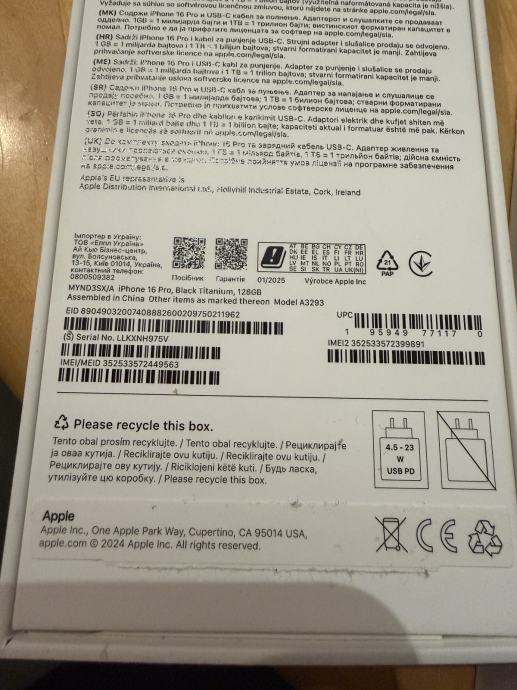Iphone 16 Pro, Black Titanium, 128GB, cijena nije fiksna!