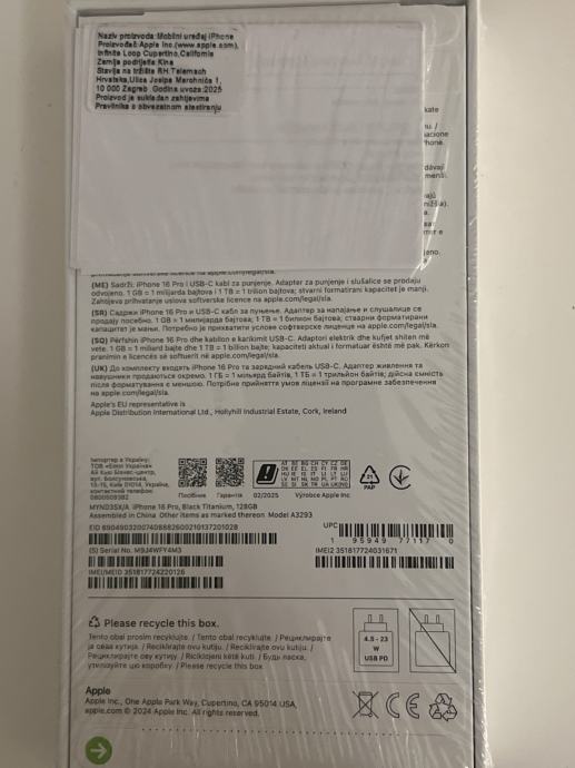 Iphone 16 Pro Black Titanium 128 GB NOVI ZAPAKIRANI R1
