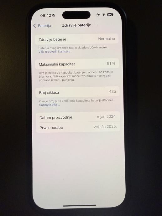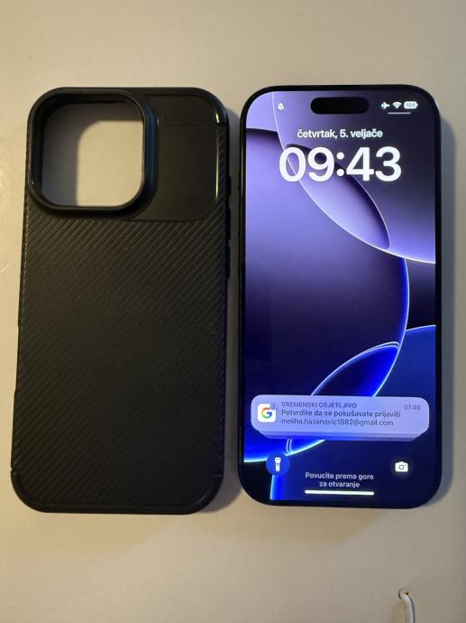 iPhone 16 pro crni, bez oštećenja, kao nov, baterija 91%, kupljen u 2. mjesecu 2025.
