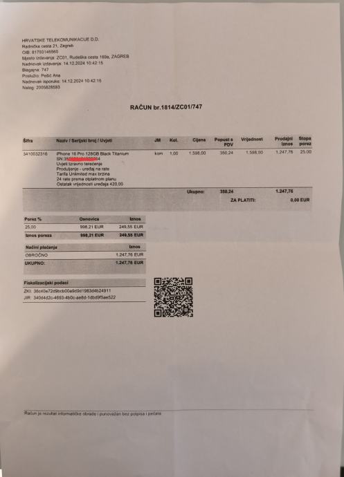 Korisnik je verificirao broj telefona u državi: Hrvatska
