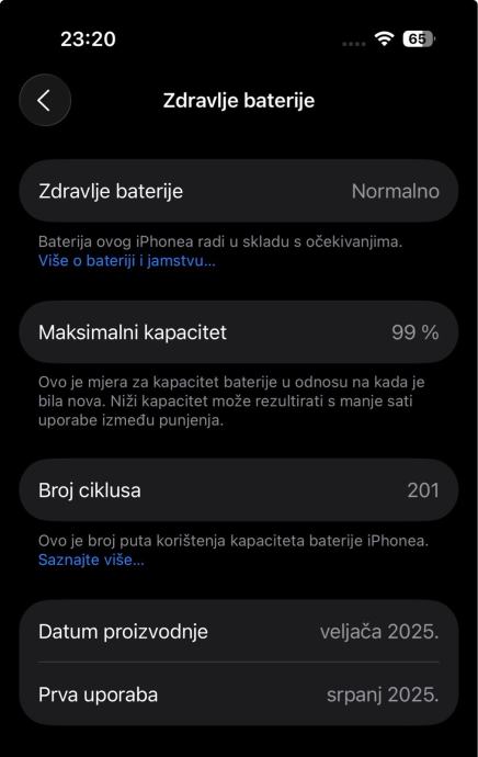 Prodajem iPhone 16 Pro, imam račun iz dućana. Mobitel je kao novi, bez ikakvih oštećenja. 200 ciklusa i 99% kapacitet baterije.