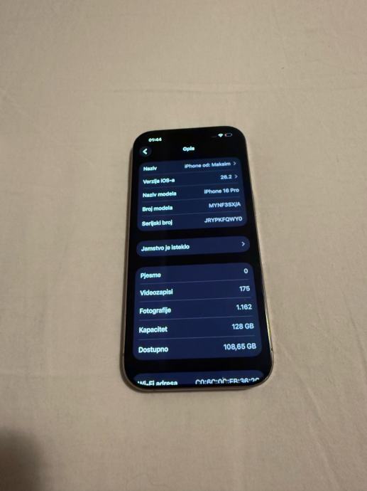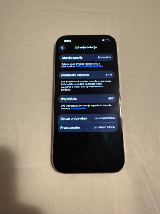 Prodajem iPhone 16 pro 128 gb 91% baterije stanje savršeno bez ikakvih točkica kao što se vidi na slikama. Mobitel dolazi s kutijom i kabelom. Moguće zamjene. Za više info inbox ili na broj 0️⃣9️⃣5️⃣8️⃣0️⃣0️⃣9️⃣0️⃣5️⃣1️⃣