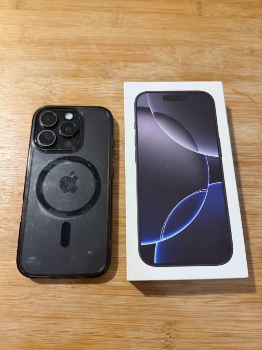Prodajem iPhone 16 Pro u crnoj boji s 128 GB memorije.