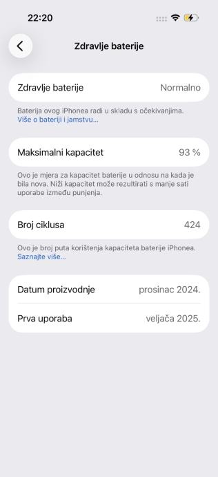 Zdravlje baterije na 93%.