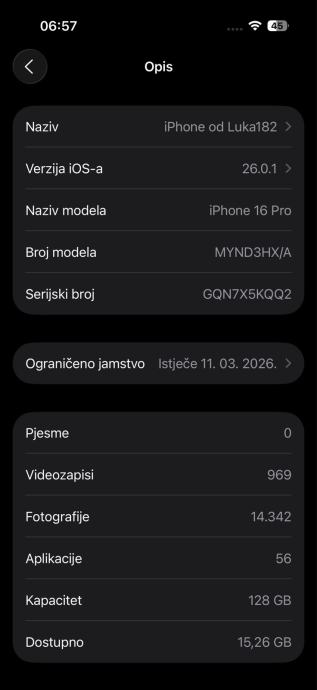 Iphone 16 pro pod garancijom. Cijelo vrijeme koristenja mobitel je bio u maskici. Stanje 10/10. Jedini razlog prodaje je prelzak na Iphone 17 pro