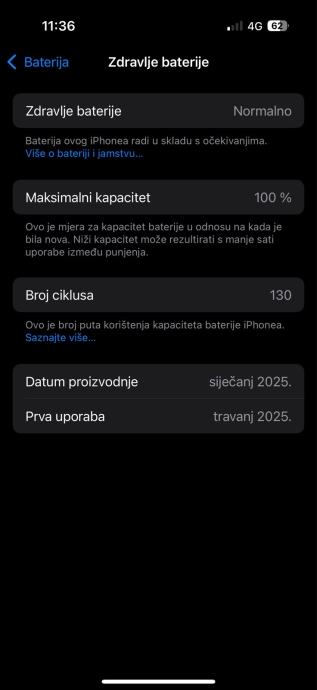 Prodajem potpuno novi iPhone 16 Pro Titanium White u besprijekornom stanju. Uređaj je proizveden u siječnju 2025. godine i prvi put korišten u travnju iste godine. Baterija je na 100% kapaciteta sa samo 130 ciklusa punjenja. Dolazi sa original kablom za punjenje ,kutijom te dvije maskice. Može zamjena samo za Iphone 17 Pro uz moju nadoplatu.