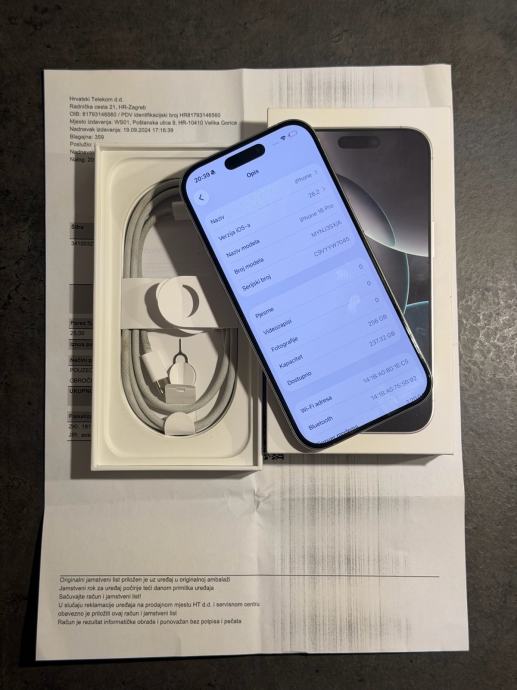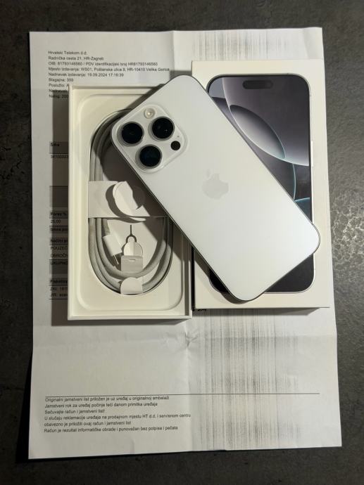 Prodajem iPhone 16 pro od 256 GB memorije u bijeloj boji. Mobitel je u savršenom stanju bez ikakvih tragova korištenja kao što se može vidjeti na slikama. Uređaj kupljen prošle godine u 9. mjesecu u Hrvatskom Telekomu te ima drugu godinu garancije sa računom u Agram servisu. Na uređaju nikada ništa nije mijenjano ili popravimo te je sve ispravno. Zdravlje baterije na 89% kapaciteta.