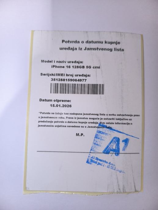 Novo, neraspakirano, račun, jamstvo, kupljen u A1.