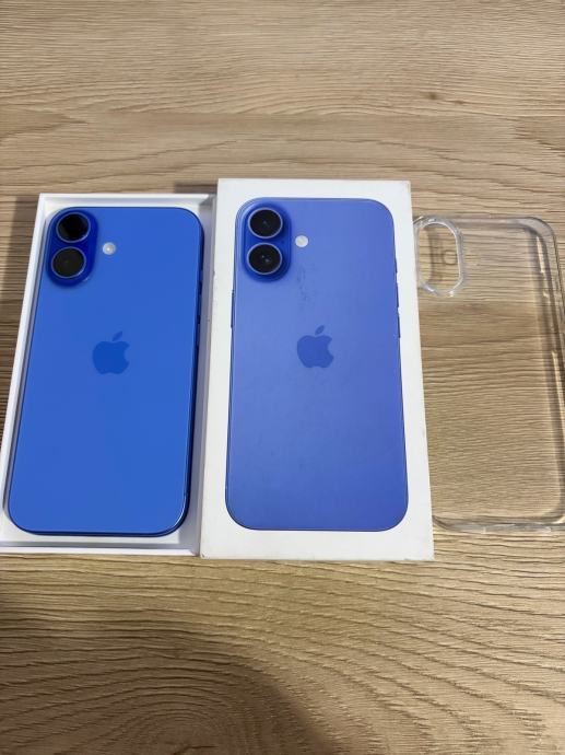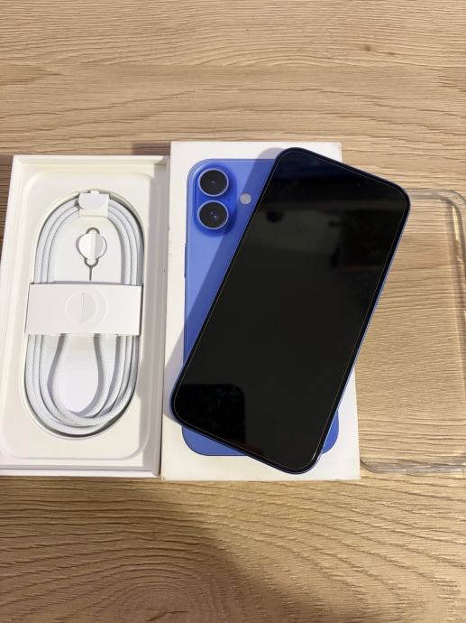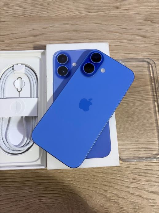 Apple Iphone 16 128gb ultramarine plava boja, zdravlje baterije 98%, sve ispravno i radi, bez ostecenja. Na zaslonu je kaljeno staklo i maskica dolazi gratis. Kutija, kabal za punjenje i racun.