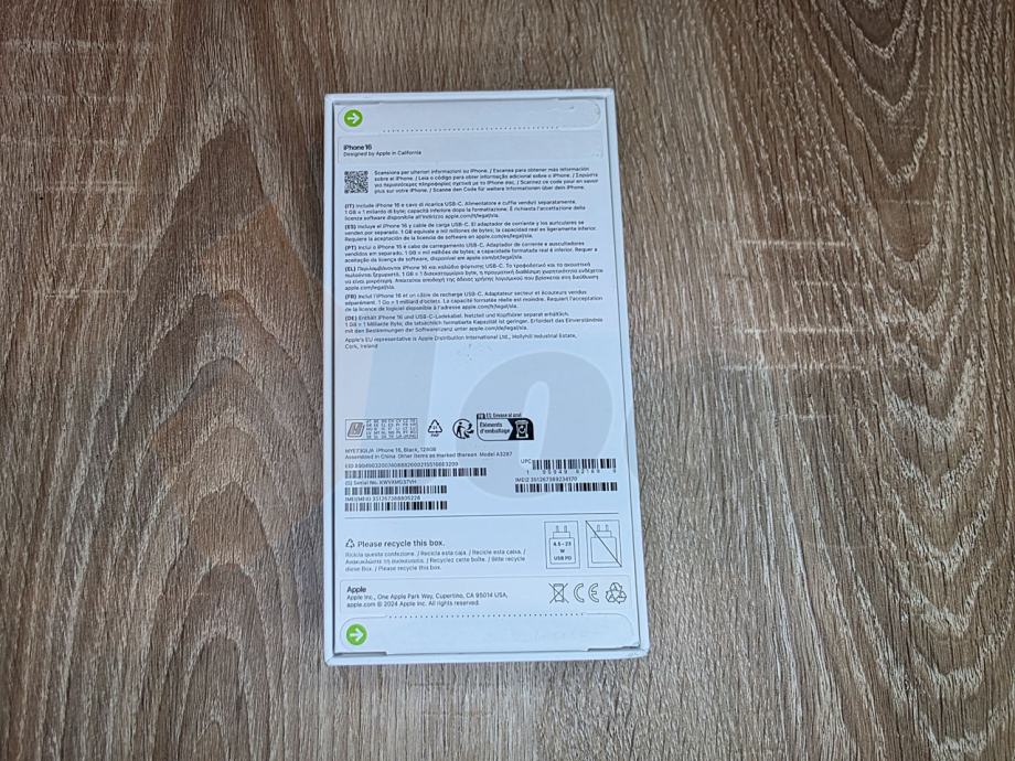 potpuno nov i nekorišten mobitel, s pismenom garancijom od 26.02.2026. godine; 128GB 8GB RAM; Super Retina XDR OLED, HDR10, 6.1″ display 1179 x 2556 pixels, iOS 18, upgradable to iOS 18.2; Dual kamera 48MP, 12MP; Selfie camera 12MP , (depth/biometrics sensor); Face ID, accelerometer, gyro, proximity, compass, barometer… boja Black.