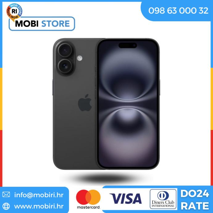 Apple iPhone 16 Black, Novo u trgovini, račun, jamstvo 》WWW.MOBIRI.HR《