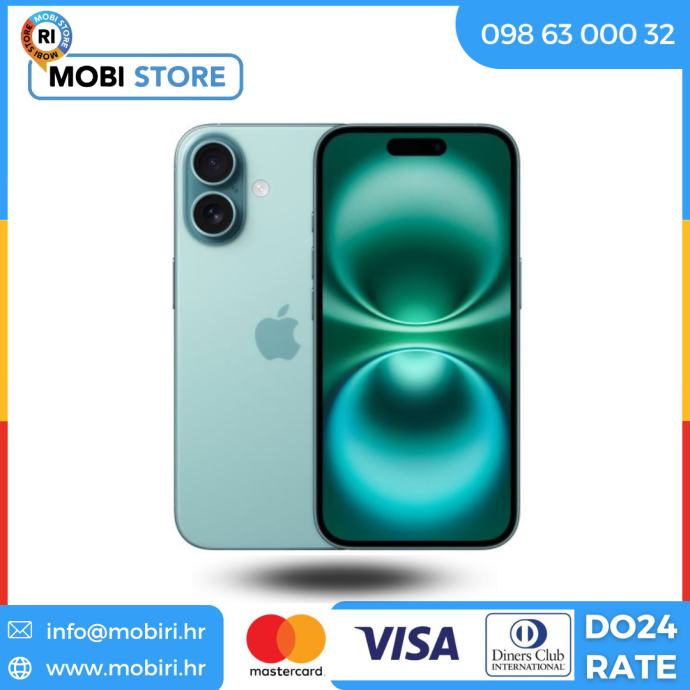 Apple iPhone 16 Teal, novo u trgovini, račun, jamstvo 》WWW.MOBIRI.HR《
