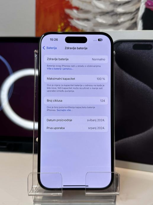 iPhone 15 Pro 128GB Black Titanium • baterija 100% •