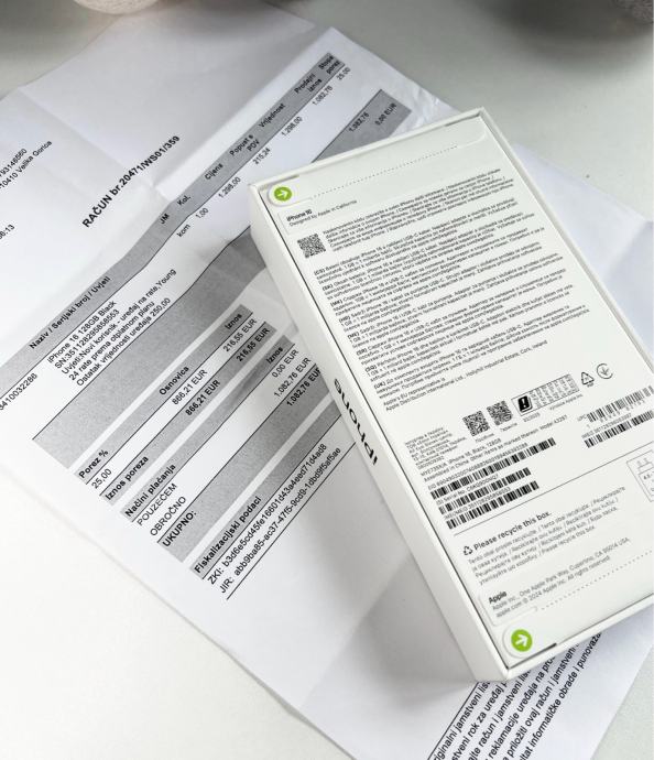 Uz mobitel dolazi i račun sa jamstvenim listom.