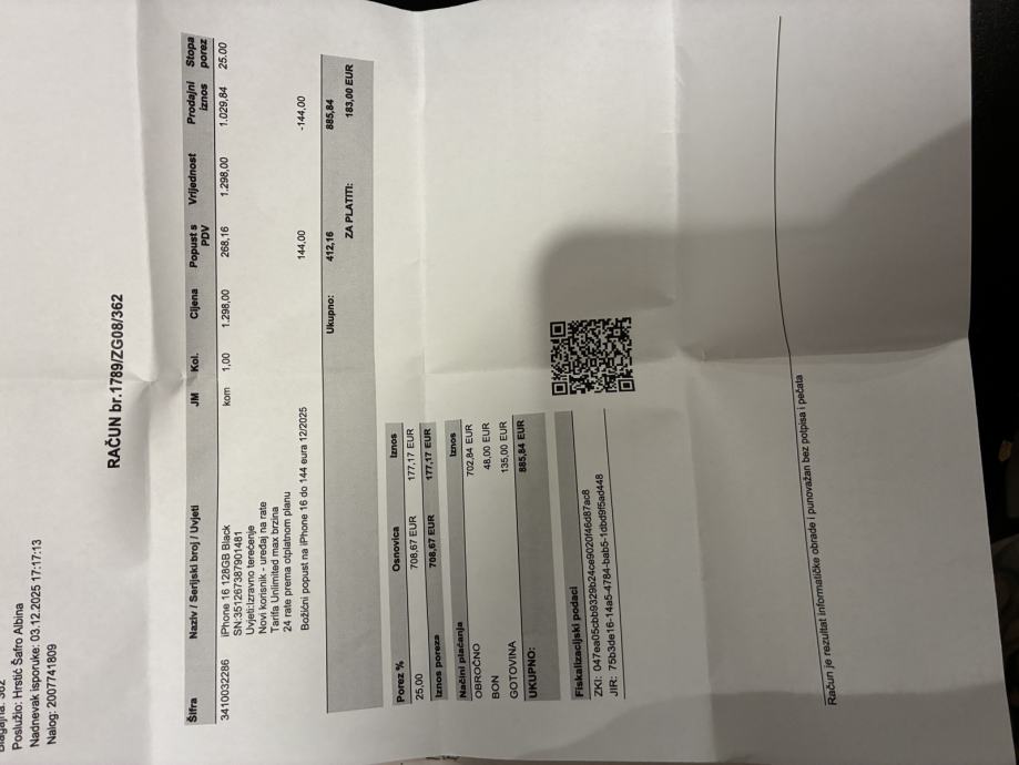 Prodajem gotovo nekoristen iPhone 16 128GB Black. Mozda 3 tjedna sam ga koristio dok nisam dobio novi mobitel.