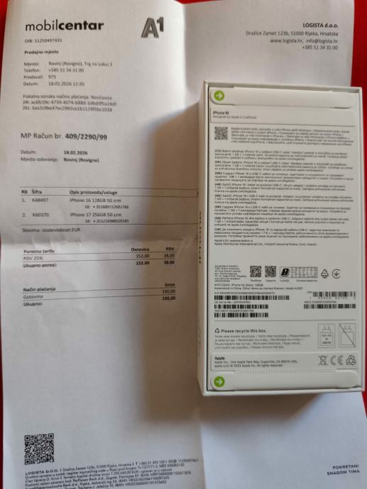 IPHONE 16 128GB BLACK NOVI ZAPAKIRAN PREUZETI MOGUCE ZG,OS