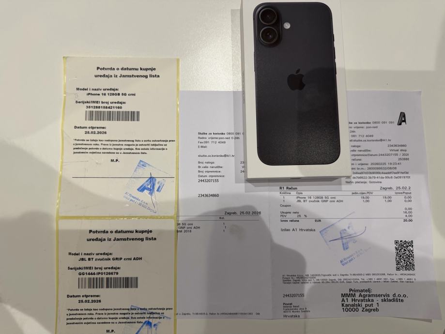 iPhone 16 128GB black NOVO ZAPAKIRANO Vž-Zg-Os-Pu