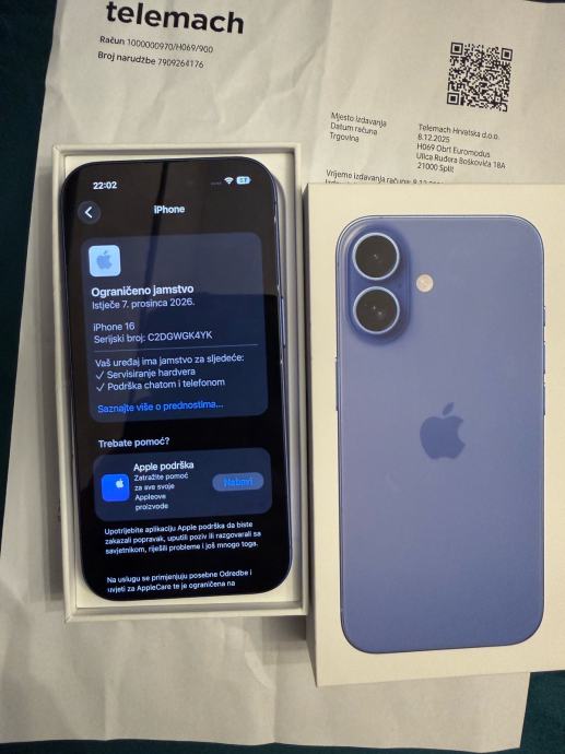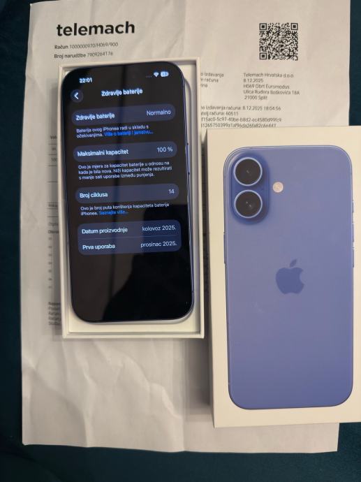 Prodajem malo korišten iPhone 16 s 128GB memorije u Bluemarine boji. Uređaj je u savršenom stanju, bez vidljivih tragova korištenja.