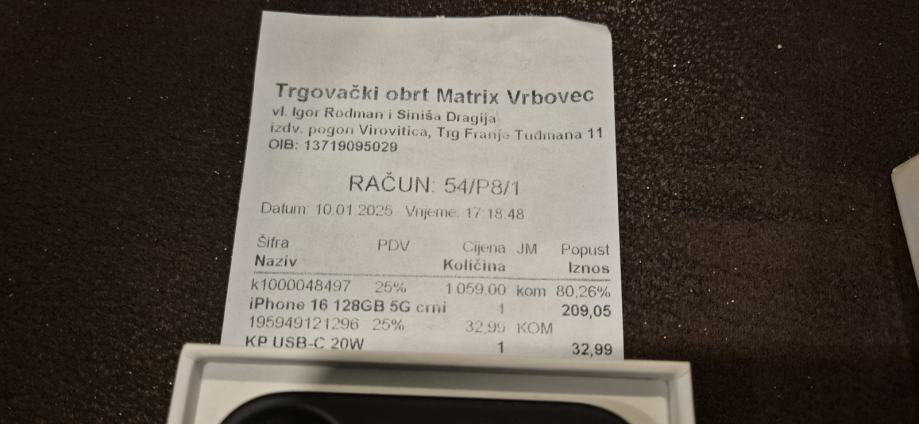 Iphone 16 128gb CRNI..GARANCIJA..ZAMJENE