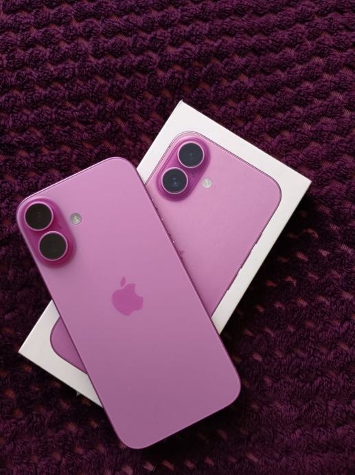 Prodajem iPhone 16 PINK, 256GB, star godinu dana, u odličnom stanju, bez ogrebotina, zdravlje baterije 94%. Uz mobitel kabel, kutija i maskice te zastite za prednju i zadnju stranu.