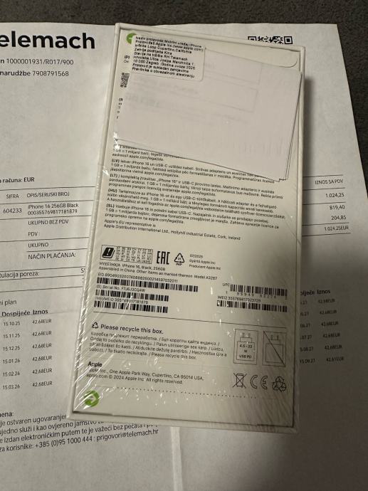 Prodajem potpuno novi iPhone 16 u crnoj boji. Uređaj ima 256 GB memorije i još je zapakiran. Dolazi s računom i garancijom.