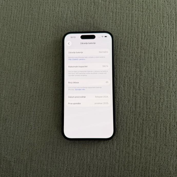 Zdravlje baterije 100% (65 ciklusa punjenja)