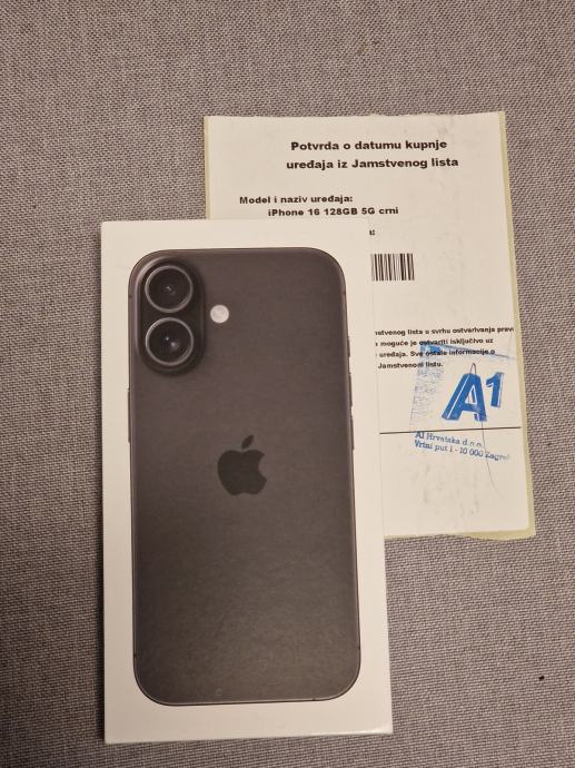IPhone 16, Black, 128gb, račun, garancija 24mj. NOVI