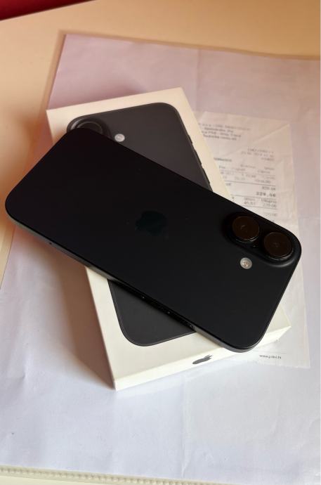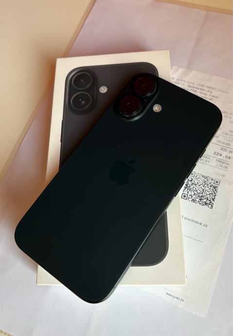 Prodajem iPhone 16 u crnoj boji sa 128 GB memorije. Uređaj dolazi u originalnom pakiranju i u odličnom je stanju. Uz uređaj dolazi račun, maska (Spigen), kaljeno staklo i sva pripadajuča oprema. Aktiviran je 27.12.2025. Pod garancijom je. Zdravlje baterije je 92%. Moguća dostava za područje Zagreba i Samobora. U ostale dijelove Hr šaljem poštom. Molim samo ozbiljne ponude.