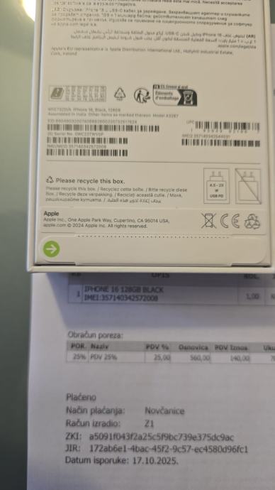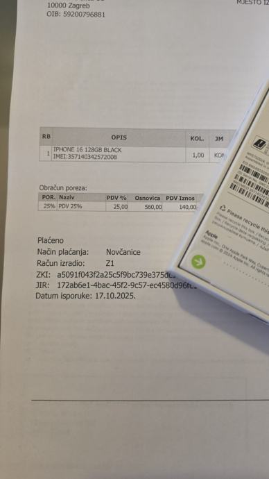 IPHONE 16 CRNI NOVO 128gb