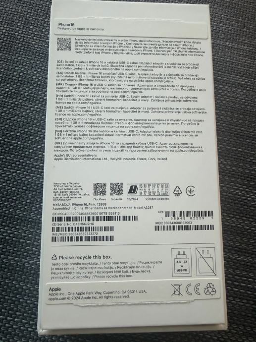 Prodajem iphone 16 128 GB u ružičastoj boji. Telefon je bez ikakvih tragova korištenja,od prvog dana u zaštitnoj maskici. Kupljen je u T Com-u početkom ove godine,još uvijek ima važeću garanciju i racun. Zamjene me ne zanimaju, i na takve upite ne odgovaram.