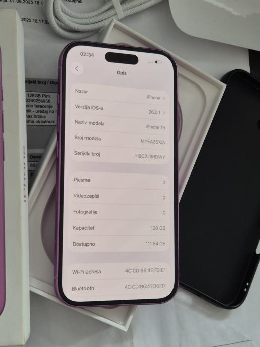 iPhone 16 128GB Pink boja. Staro 4 mjeseca, očuvano, baterija 100%, račun/garancija, kutija.