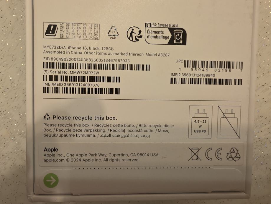 iPhone 16 Black 128Gb Novi Zapakiran