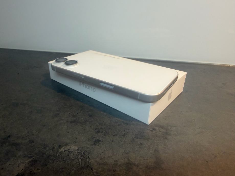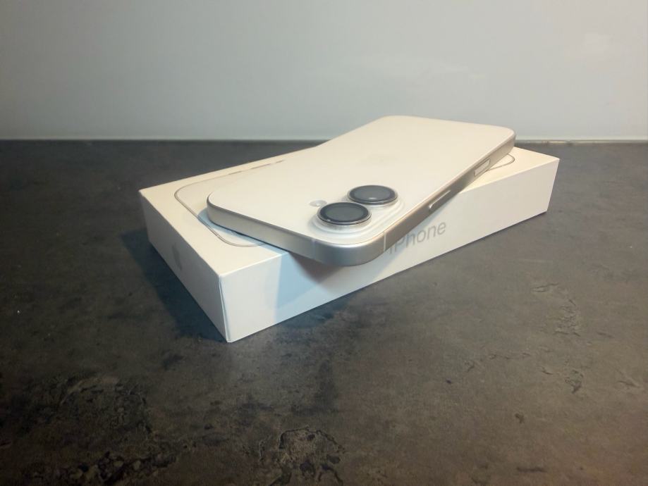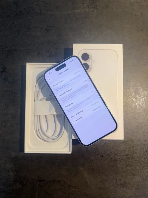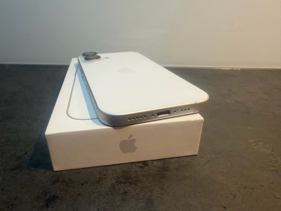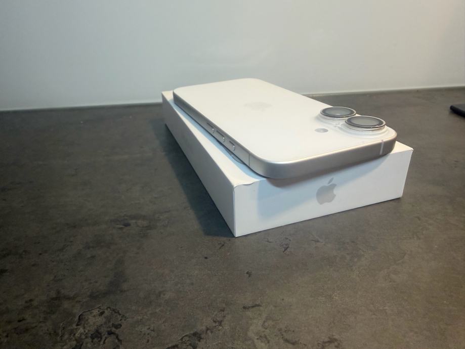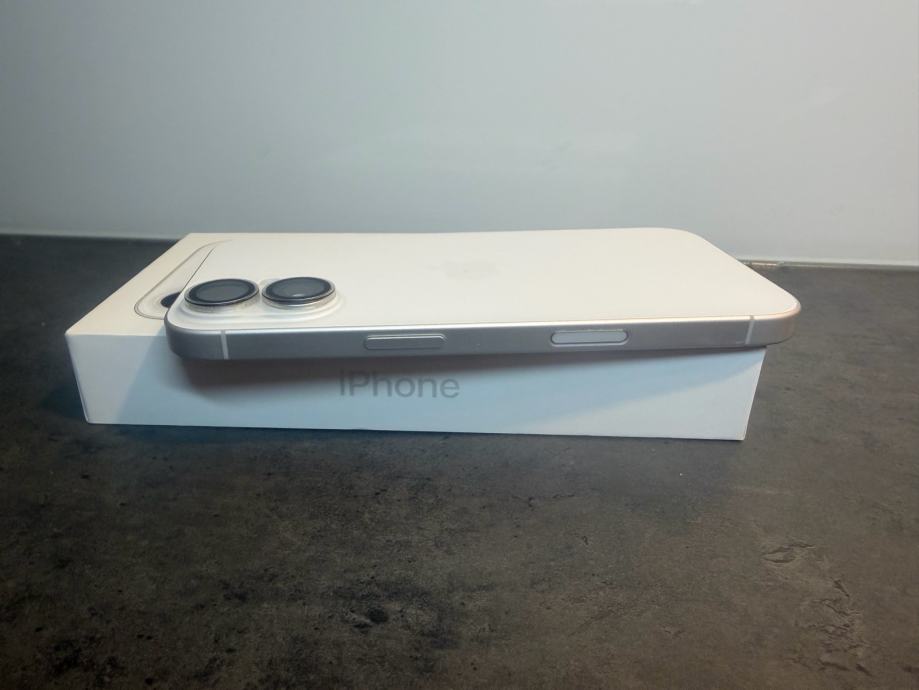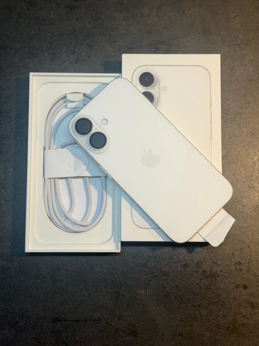 Prodajem iphone 16 od 128Gb memorija u bijeloj boji. Mobitel je u savršenom stanju bez ikakvih tragova korištenja sa zaštitnim staklom kamere i ekrana te maskicom. Uređaj je kupljen u Telemahu 8 mjesecu 2025 godine te dolazi sa računom i jamstvom. Zdravlje baterije je na 100% kapaciteta i 75 ciklusa punjenja.