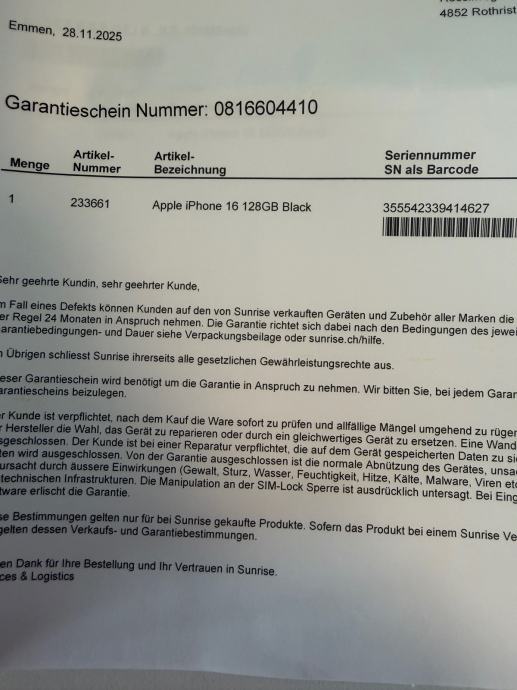 Iphone 16 novi i zapakiran, racun i garancija, kupljen u svicarskoj